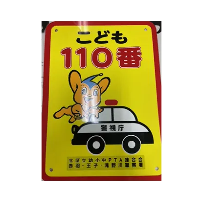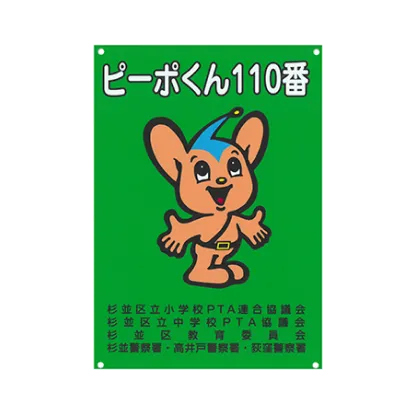 警視庁のシンボルマスコット「ピーポくん」の名前とイラストを使用した「ピーポくん110番」プレートです。
