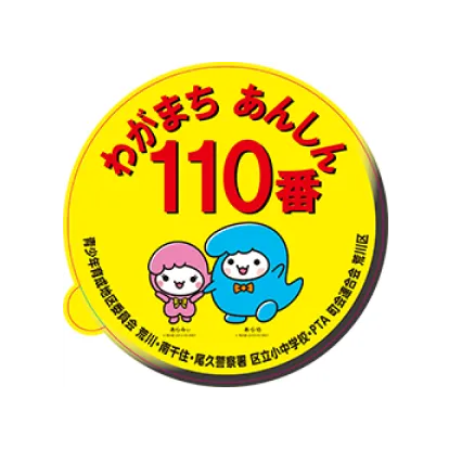 警視庁シンボルマスコットである、「ピーポくんファミリー」(防犯用)を使用したものです。