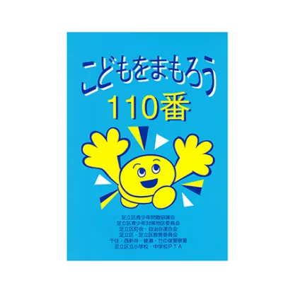 あだち子どもフェスティバルのイメージキャラクター「パッチョくん」を、こどもをまもろう110番のイラストに使用しました。
