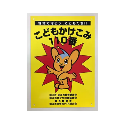 「こども110番の家」の目印に、シンボルキャラクター「ハチ公くん」を掲載しています。
