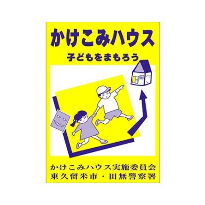 こどもに親しみのあるピーポくんと家へ駆け込む人のデザインを使用しています。