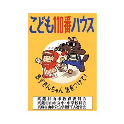 赤ずきんちゃん(児童・生徒)がおおかみ(不審者)から逃げている姿から、このポスターを貼っている家に逃げ込めると連想できるようにしています。