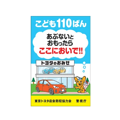 東京都石油業協同組合では、「かけこみ110番」事業を地域貢献の一環として実施しています。ガソリンスタンドの施設は、【道路に面した目立つ場所にある!】【夜間でも明るい!】【車の出入りが頻繁にある!】【スタッフが常駐している!】など、こどもや女性を守るための避難場所としてとても適しています。困ったことが起こったら、このポスターやのぼり旗があるガソリンスタンドに声をかけてください!